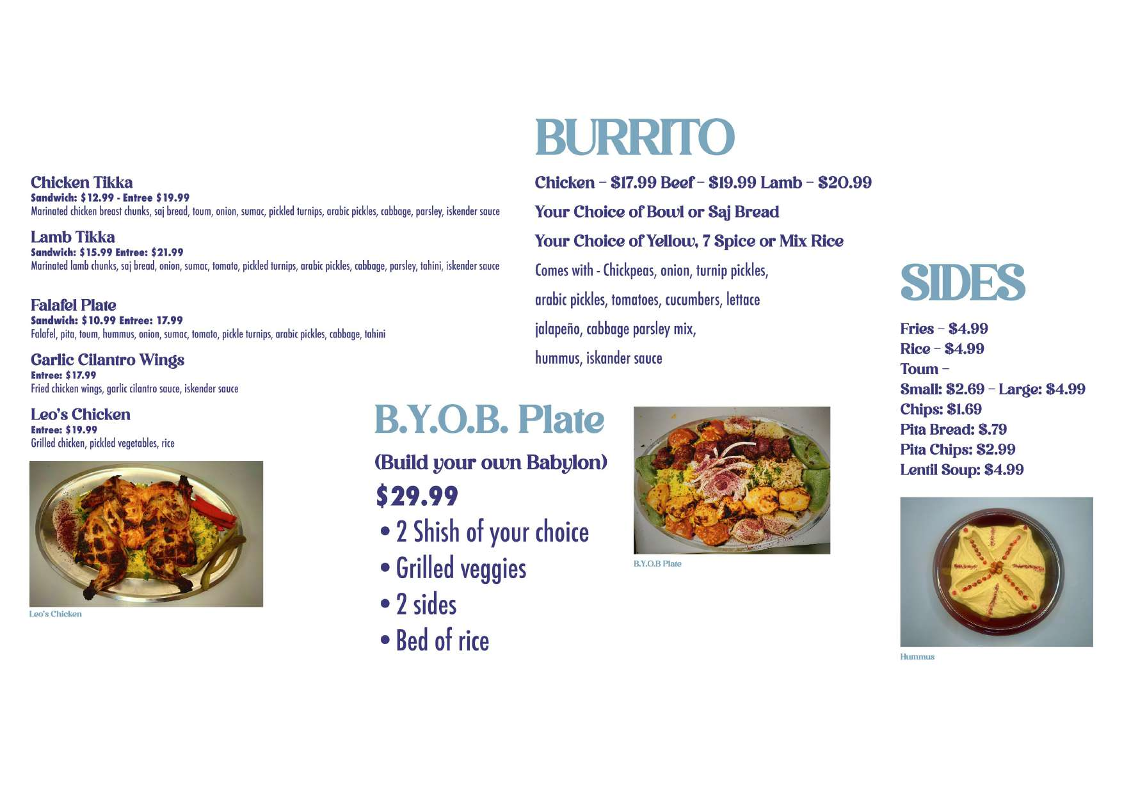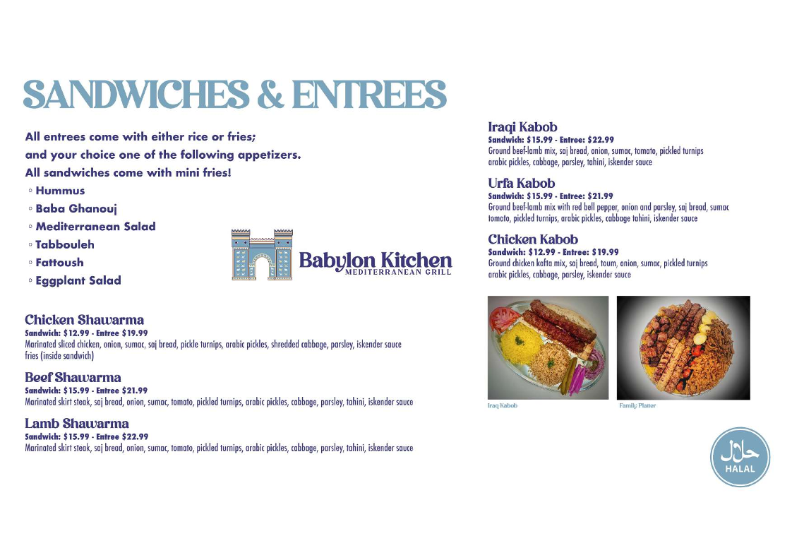 Welcome to Babylon Kitchen, a gem nestled in Comstock Park, MI, where Mediterranean flavors come alive. The menu offers a delightful array of appetizers, sandwiches, and desserts, showcasing the richness of Middle Eastern cuisine.