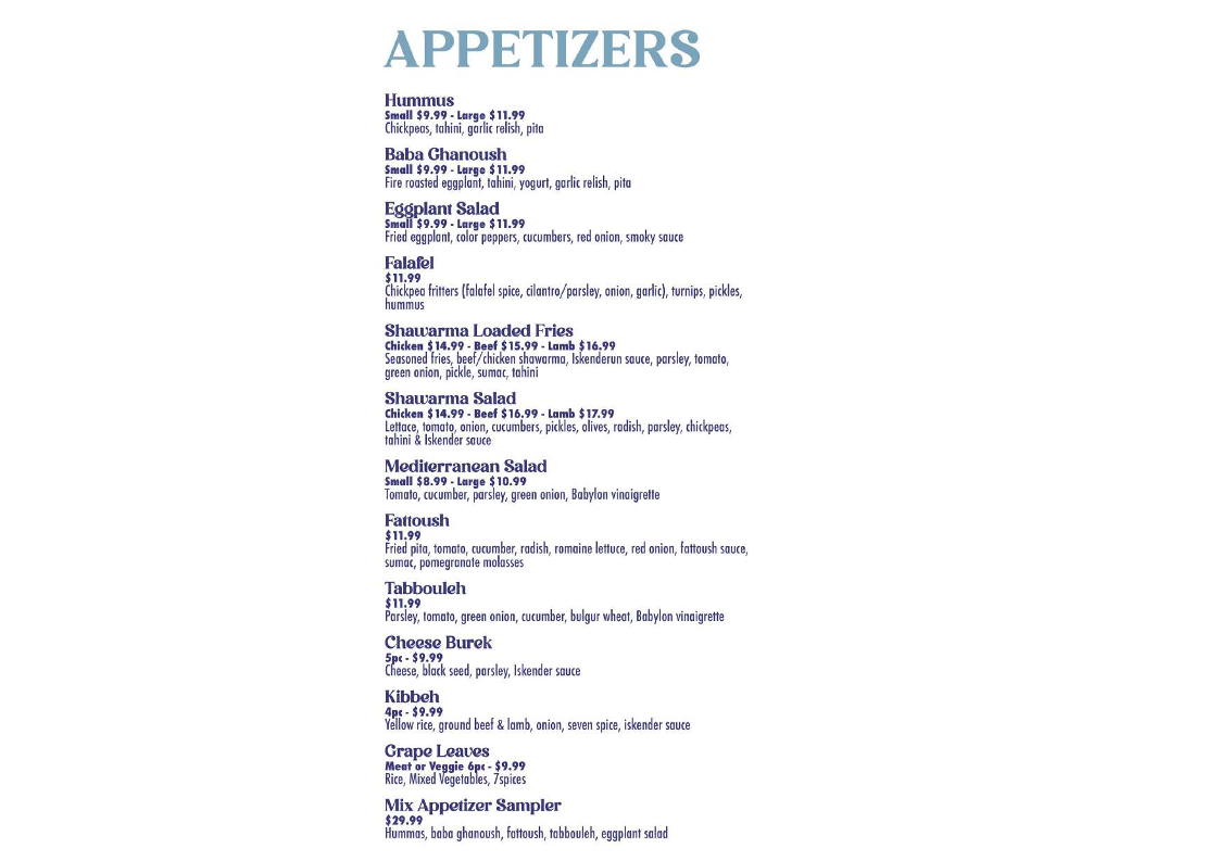 With glowing reviews highlighting the freshness and presentation, Babylon Kitchen promises a memorable dining experience. Each dish reflects a commitment to quality and flavor, making it a must-visit for Mediterranean enthusiasts.